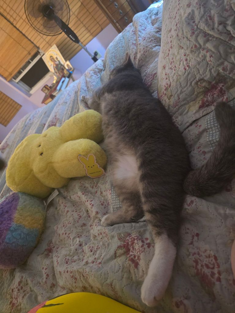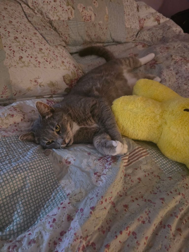 I have concluded that this cat was probably abandoned. She gets instantly attached to whoever shows her the least kindness. Poor animal.