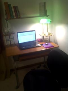 And now, as promised, pictures of my workspace before I got my first desk in 8 years and now that I finally have one.