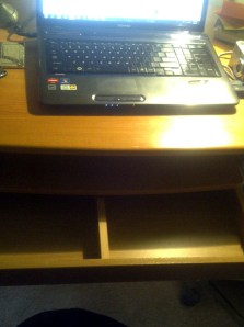 It seems like the lesson of the bathroom cabinet taught me nothing. Two months ago, I finally got myself a real desk and was very excited about it. Since then, I have spent a lot of time at this desk, working, blogging, doing research, shopping, etc. And in all this time I had no idea that the desk had this convenient and spacious slide-out drawer you can see on the picture.