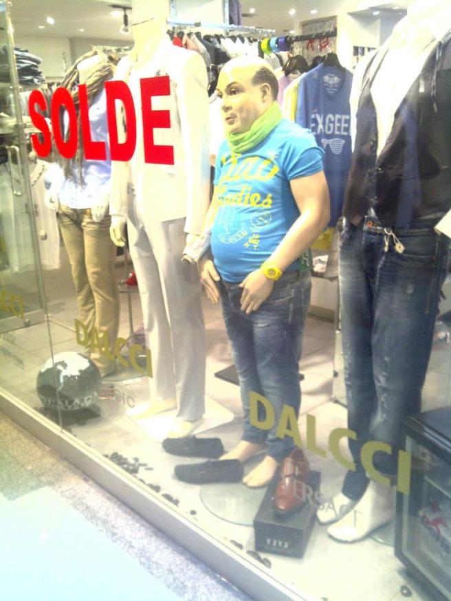 A store in Montreal put a mannequin of a regular-looking person in its window. When I saw it, I thought how nice it would be if we saw more mannequins that look like actual people rather than the weird extraterrestrials they put in the stores right now. I always wonder why use them at all since mannequins don’t look even remotely like human beings, so it’s impossible to figure out from them what the clothes will look like on you.