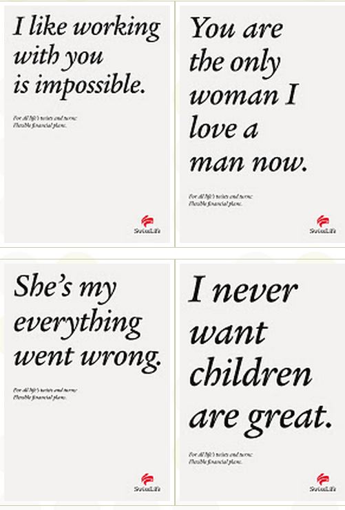 The following ads for Swiss Life won “Europe’s premier creative award” for advertising campaign. I found them here.