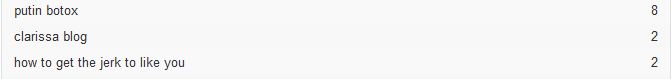 Forget about Putin’s Botox for the moment. Can you explain to me what the last search on the list is all about? Why are there two people who are interested in getting a jerk to like them?