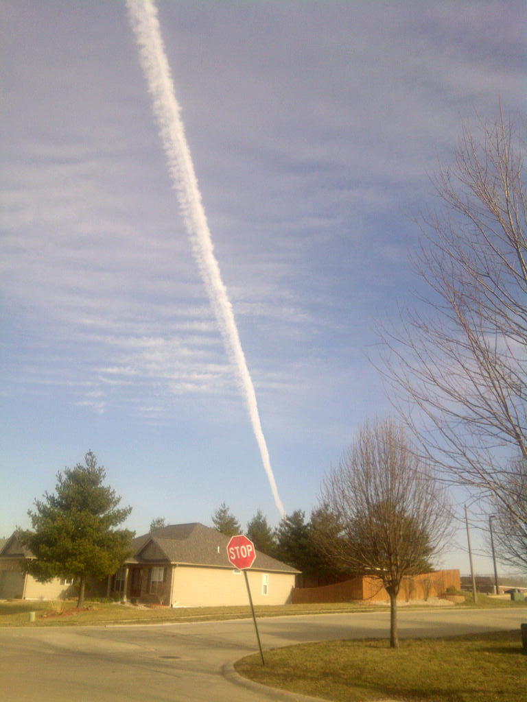 Thank you for the explanation, Rob F. I’m very glad I didn’t see the airplane in the process of leaving this contrail because I’d be blogging from the psych ward if I had.