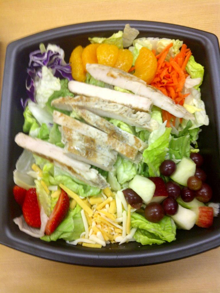 I don’t know what happened but our university cafeteria has improved dramatically this year. Instead of mountains of deep-fried and breaded stuff, we now have a person who makes salads for people right in front of them. And the salads are all great. The line to the salad person is a lot longer than the line to the hamburger stand, which is very nice to see.