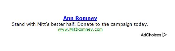 Romney’s ad doesn’t make any sense to me because Ann Romney isn’t even a celebrity. We don’t know anything about her so we don’t give a shit who’s she voting for.