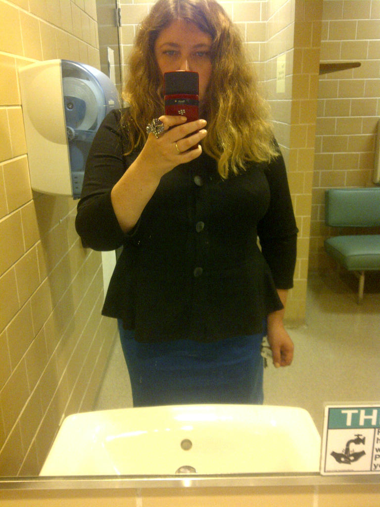 Here is the teacherly outfit I bought recently that scared N. half to death with its severity: