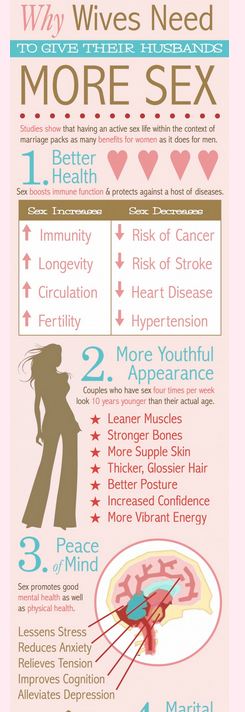 The weird housewife who crafted this piece of idiocy seems to have no idea that only enthusiastic, passionately desired sex brings all these benefits. The kind of sex she engages in out of a sense of duty and in order to manipulate her children (just read the entire thing and you’ll see what I mean) is pretty much the worst thing anybody can do to their health.