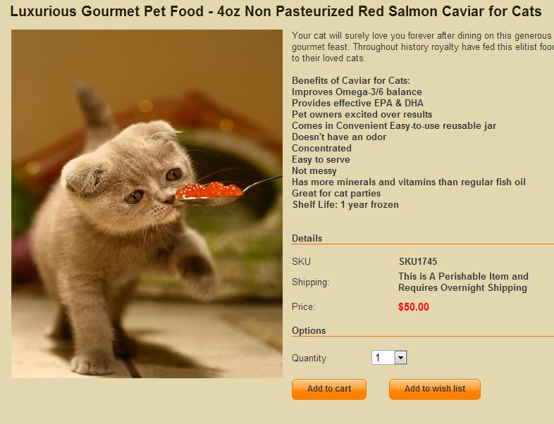 This sounds like you have some experience in the area of feeding cats with caviar.