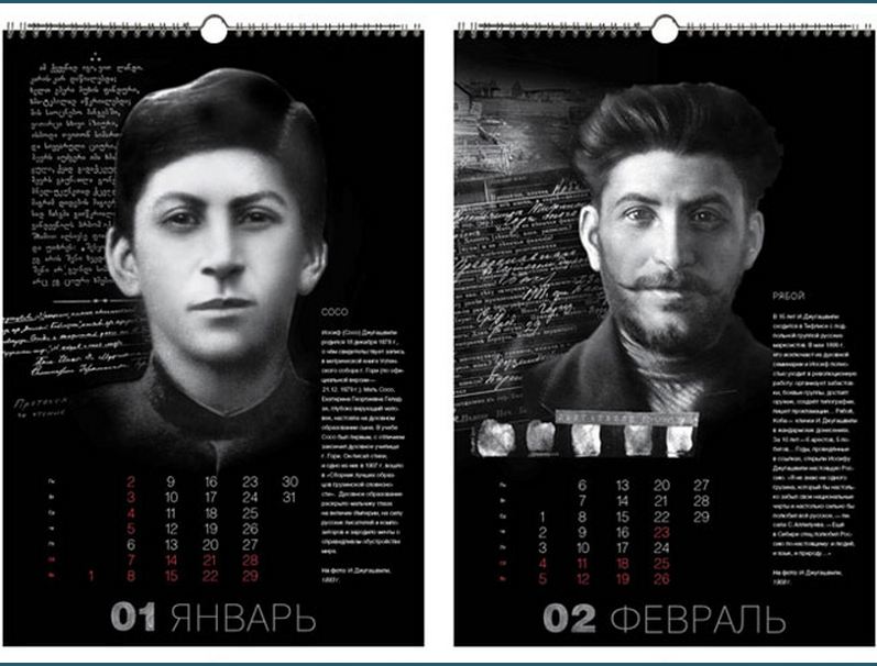 Every page of the calendar narrates an episode of Stalin’s life and features a photo of him. The calendar traces Stalin’s life, with January being dedicated to his childhood, February to his early youth, and so on until December and Stalin’s declining years:
