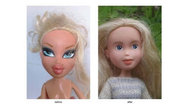 She takes the butt-ugly and scary Bratz dolls and makes them beautiful: