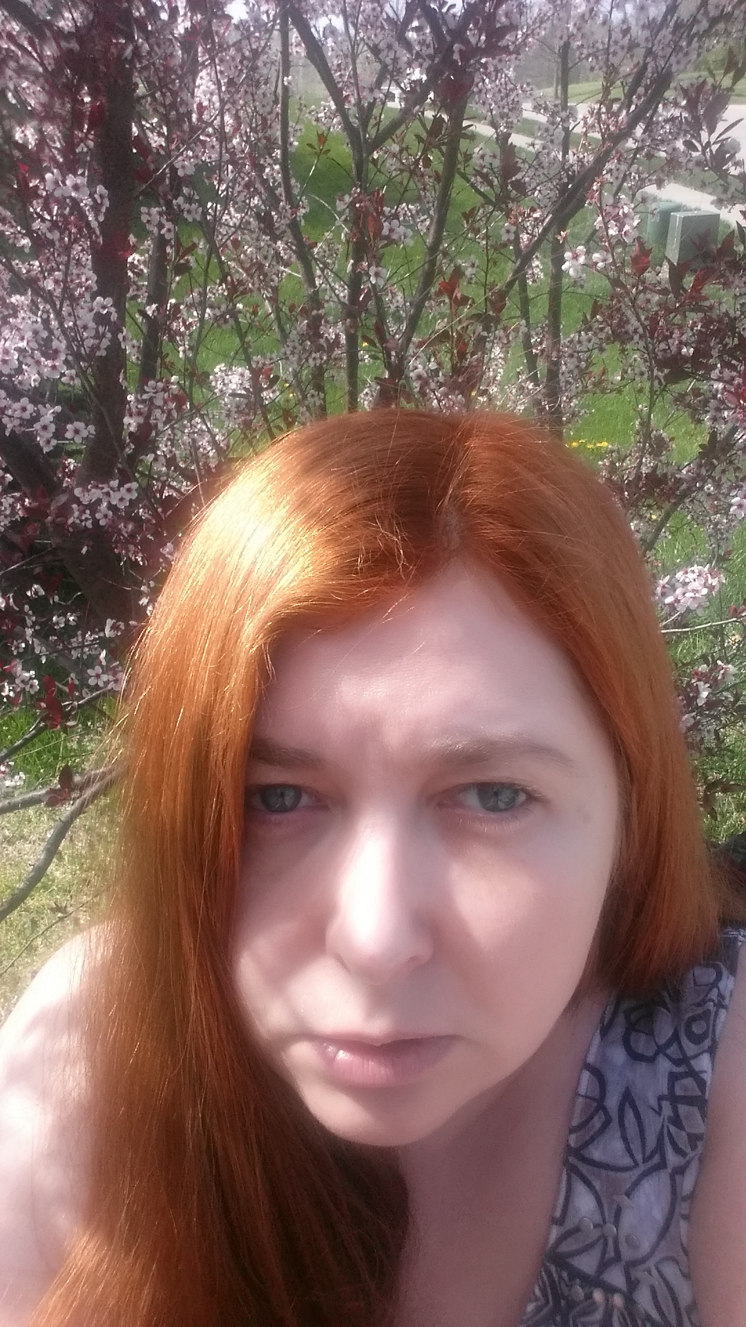 This hair looks very unnatural (the photo washes out the crimson shade a lot). And that was the whole point. 🙂