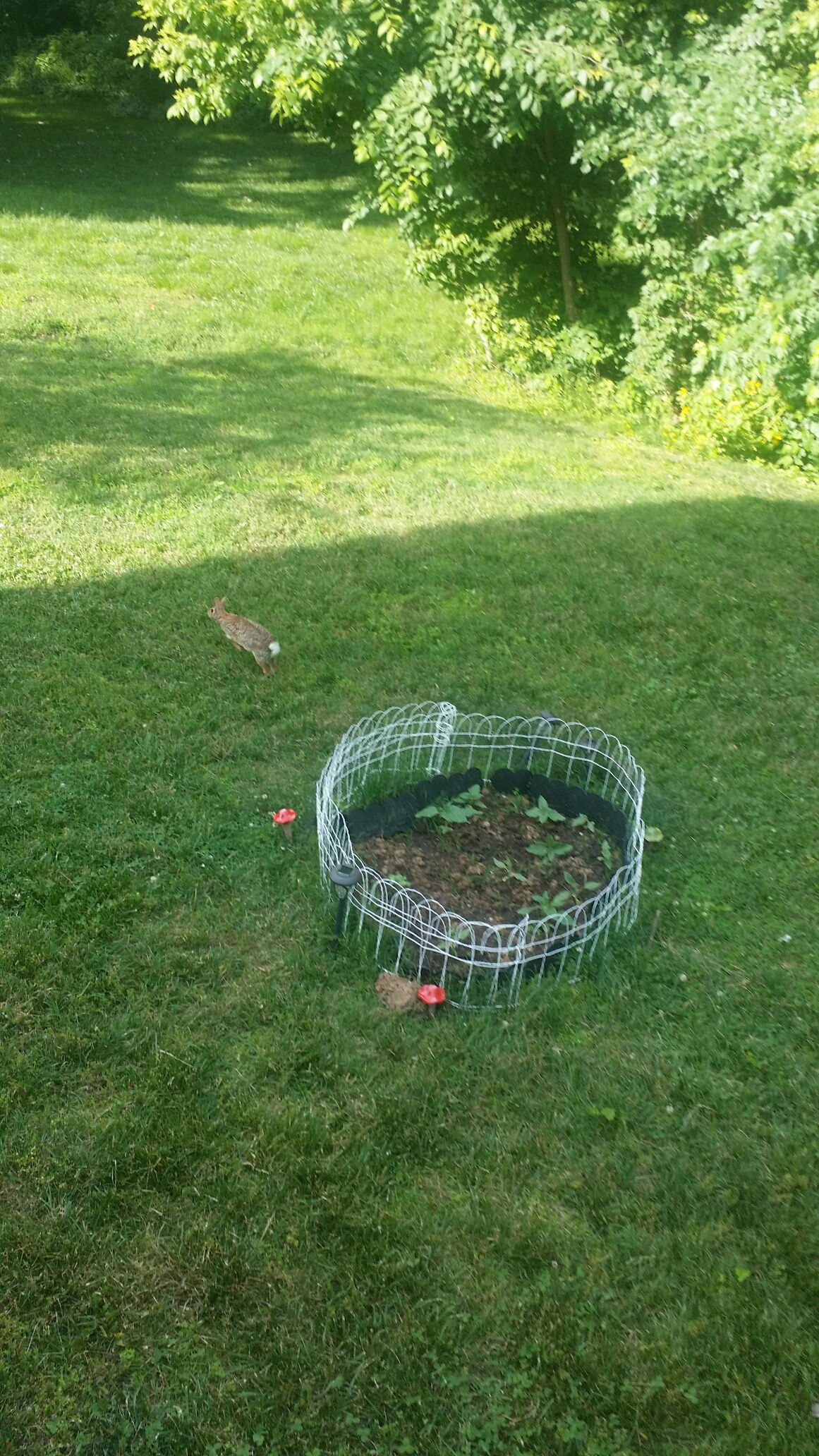 1. They represent food of the highest caliber (for rabbits) in a protected environment no less (that netting keeps them safe from foxes) and face it, what else does the rabbit have to do all day besides think of how to devour the delicious food you’re thoughtfully supplying for it?