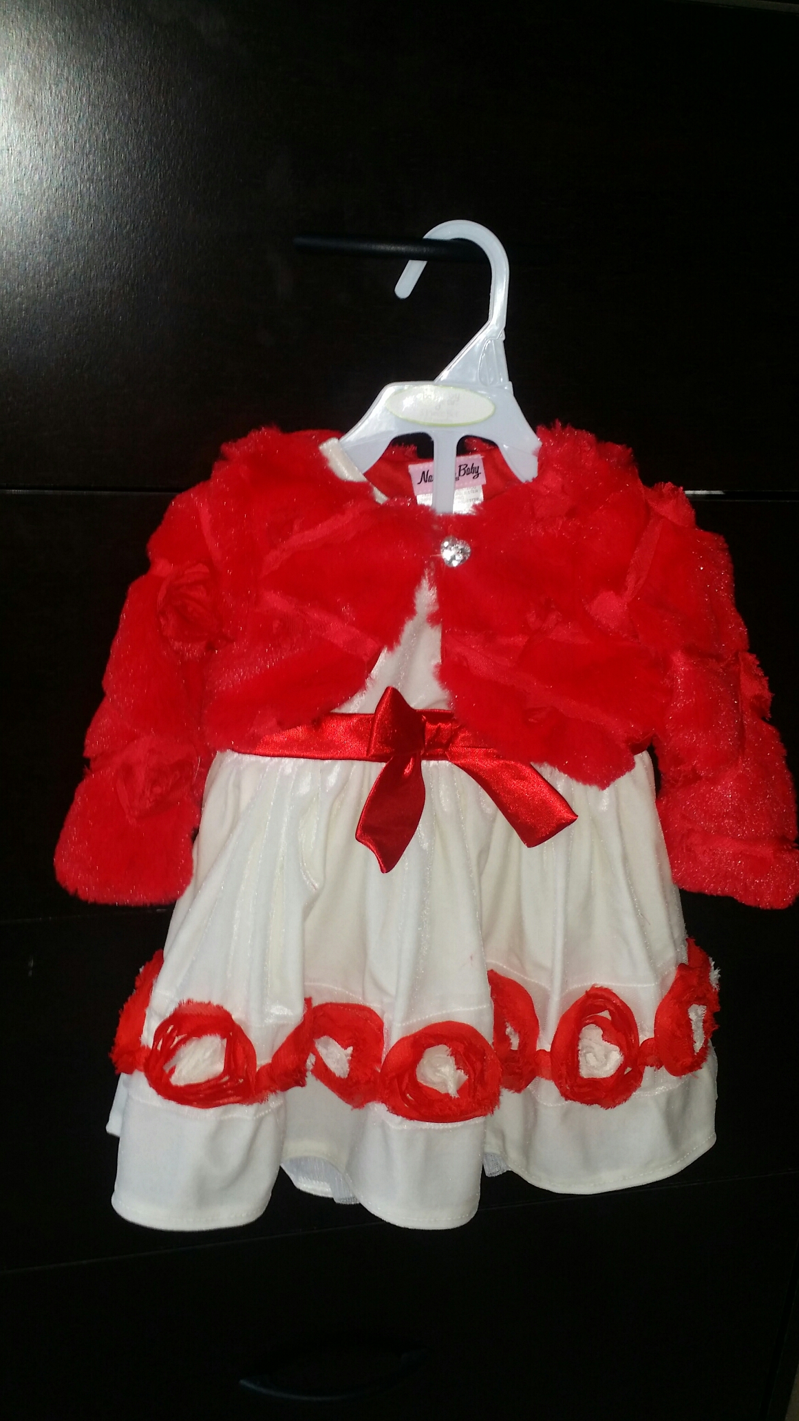 Guess who will wear this to her first party! Just in case she grows up to be a jeans and T-shirt person, I have to sneak in the cutesy outfits while she still has no idea what is being done to her.