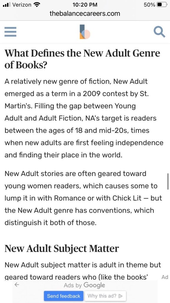 What I’m really looking forward to is the emergence of a genre targeted at people between the ages of 19 years 2 months and 11 days and 20 years 3 months and 2 days. I don’t know how we did without it until now.