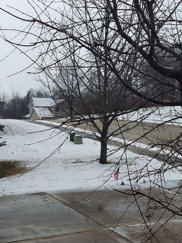 Then it stopped snowing. Then indoor children’s activities were cancelled because “driving is unsafe.” In Illinois, what you see in the photo is now considered unsafe. The driveway is wet but theres no ice, by the way.