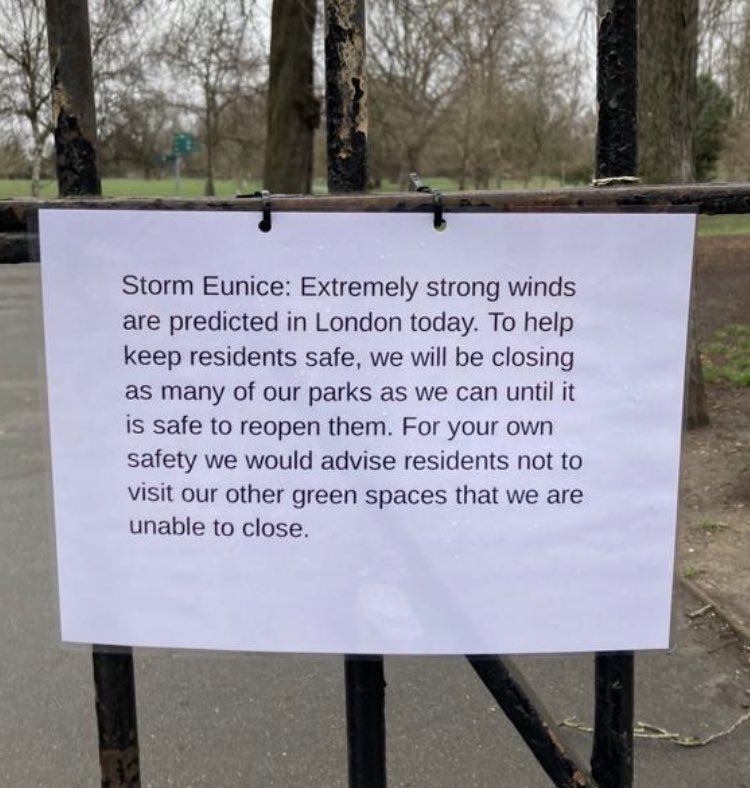 3. The winds there were around 100mph. Keeping parks open would be a liability at that point—someone gets injured at a park and the next thing you know they’re trying to push a lawsuit saying they didn’t know not to be in parks when winds are over 100mph.