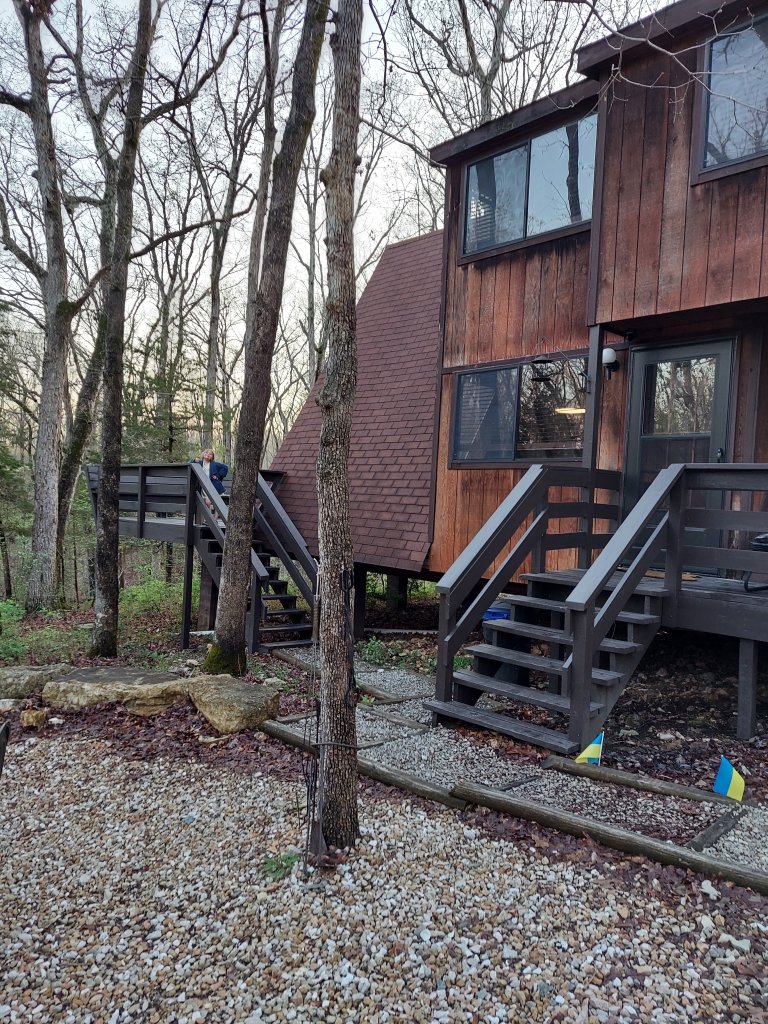 In case you are wondering how Ukrainian flags made their way to Missouri woods, I brought them, of course. I also brought the little human hiding in the scenery.