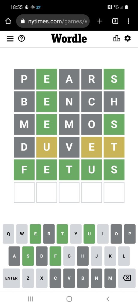 I swear I got fetus. Please don’t tell me I’ve been targeted for it and nobody else has. Any other fetus Wordlers here?