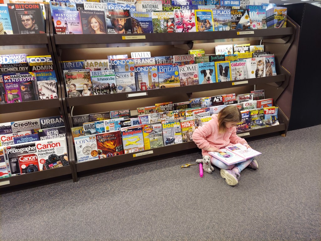 We cannot get out the door to go anywhere until the kids have gathered enough books for the car ride. Even for places five minutes away. Even youngest, who can’t read yet, wants in on this excitement and brings his board books along.