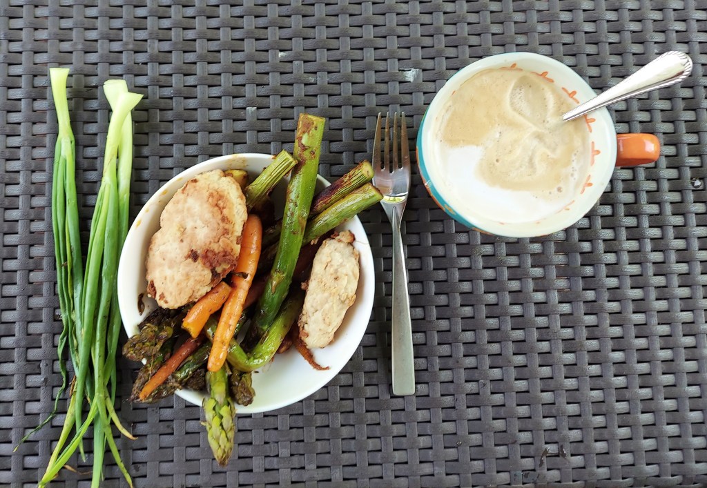 Today’s farmer market finally made sense. I made roasted new carrots and asparagus (coated in real maple syrup + mission fig balsamic vinegar + smoky olive oil in equal proportions). There are also some turkey kotlety.