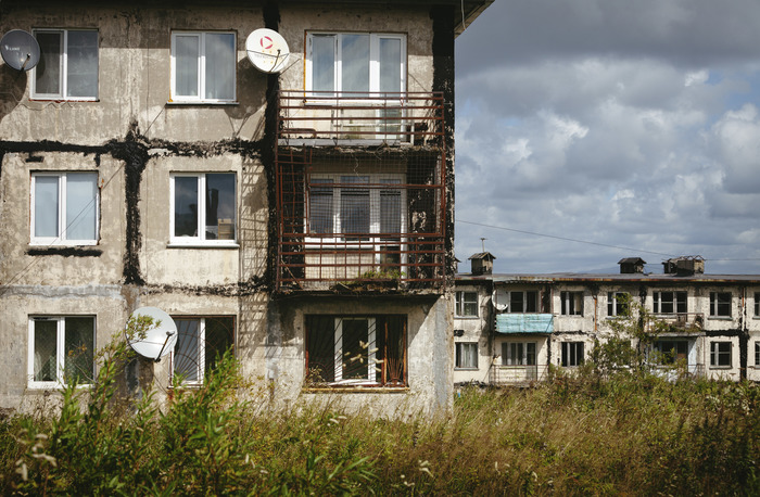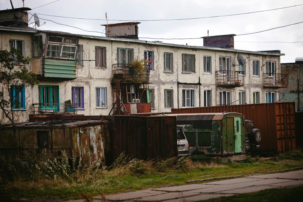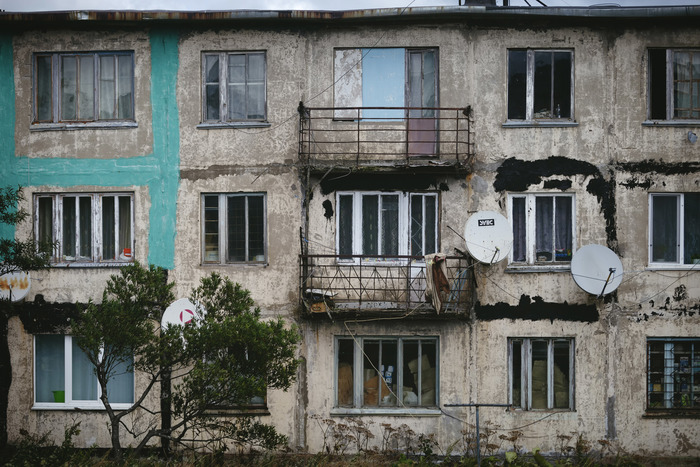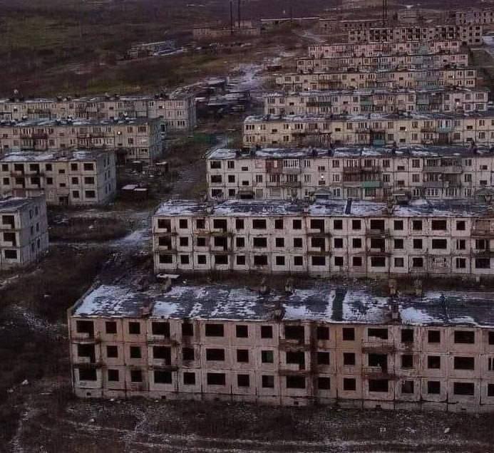 No, this is not war destruction in Ukraine. This is in peaceful Russia. There are people living there, as you can see from the TV dishes.