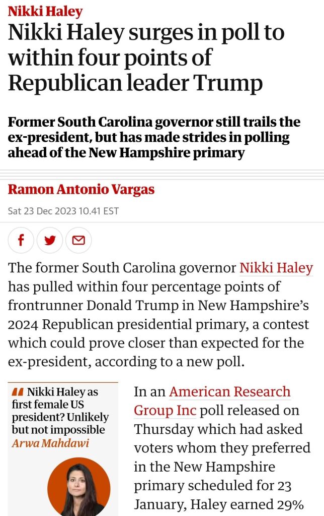 These polls are completely worthless. Haley supports transing children, supports increased immigration, supports Internet censorship and has zero conservative thoughts on anything. I have been able to discern zero differences between her and Biden. And for the voters who like Biden, there’s actual Biden to vote for. Between Haley and Biden, I’d go with Biden.