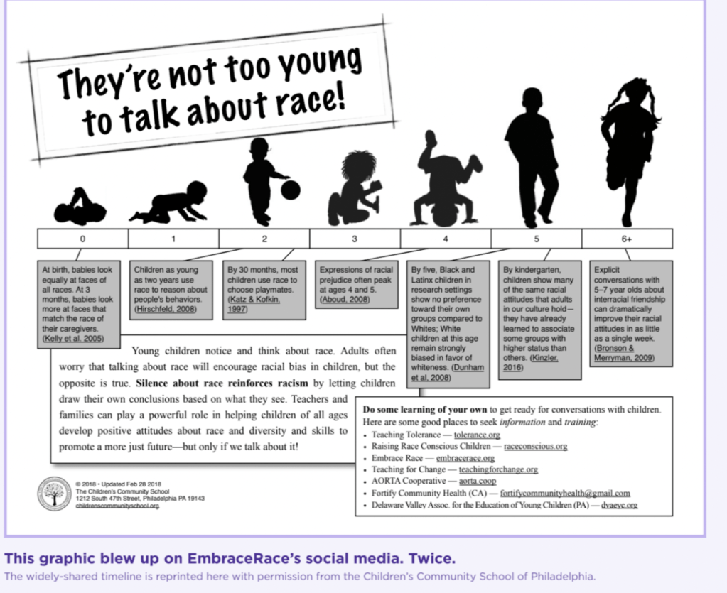 Academics and activists teamed up to create a guide to teaching Critical Race Theory (CRT) to young children, arguing that kids exhibit racial bias from as young as three years old. . . EmbraceRace, the organization behind the guide, claims that “children’s racial sensibilities begin to form in infancy” and that kids “develop racial and other biases by kindergarten.”