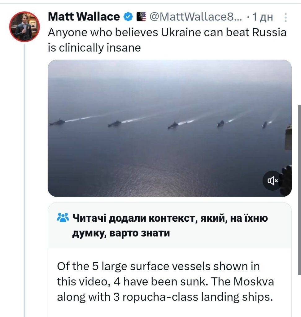 One more Russian vessel was sunk last night. A third of the entire Russian fleet (and counting) has been wiped out by Ukraine.