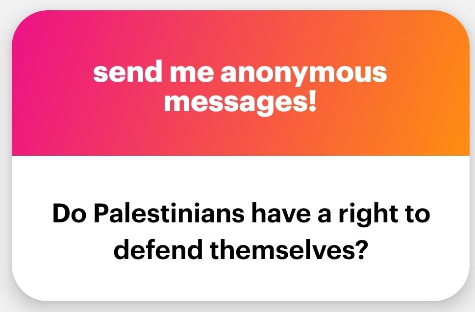 Anonymous asked: Do PALESTINIANS have a right to defend themselves? This is a question that should be easy to answer in isolation.