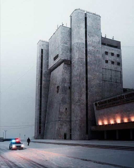 This building was erected in the Soviet Republic of Chuvash in 1985. The architects received a prestigious state award (well, it was the USSR, there was no other type) for the project.