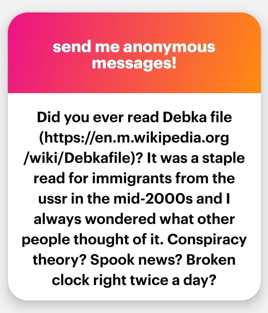 I became aware of Debka after 9/11. It was one of a zillion sites that I would visit for news, opinion and rumors, with a minimal format. It was apparent early on that it had a particular (and supportive) focus on Israel’s own war on terror, also that it was interesting but not reliable. In retrospect we know it was run by people who had served in Israeli military intelligence, but that is completely unsurprising. Whether it was an official secret project or just a private entrepreneurial construct, what exact interest group or ideological faction it might have represented, I couldn’t say.