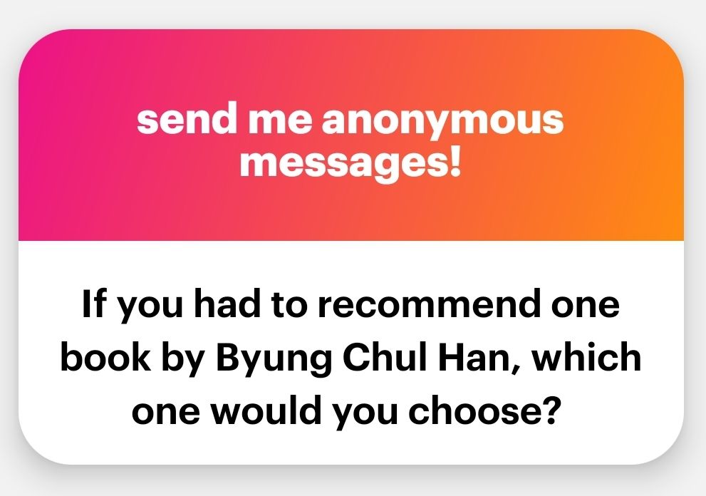 I’d go with The Burnout Society. I quote it more than anything else by him.