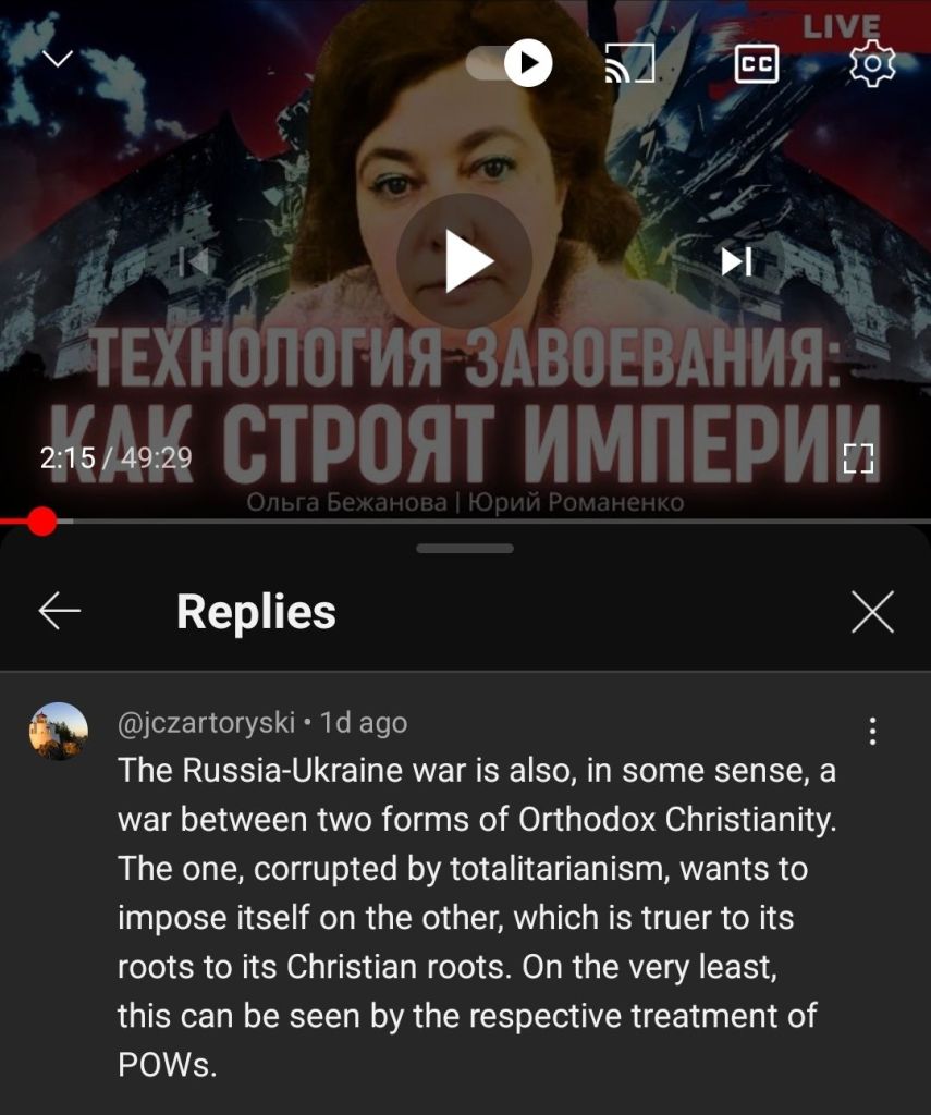 Somebody left an interesting comment on my Ukrainian YouTube show: