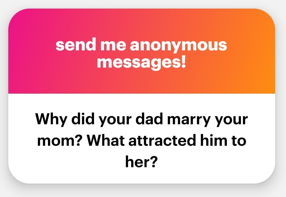 Dude, I don’t know. He never said. Dads don’t usually discuss such things, do they? She was mega pretty, had a crowd of suitors. They were barely out of their teens when they met.