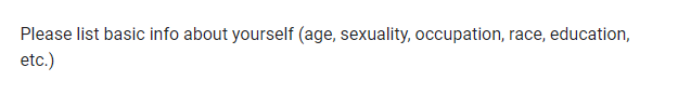This is not an anonymous survey! This is all under my own name, and these questions are very inappropriate.