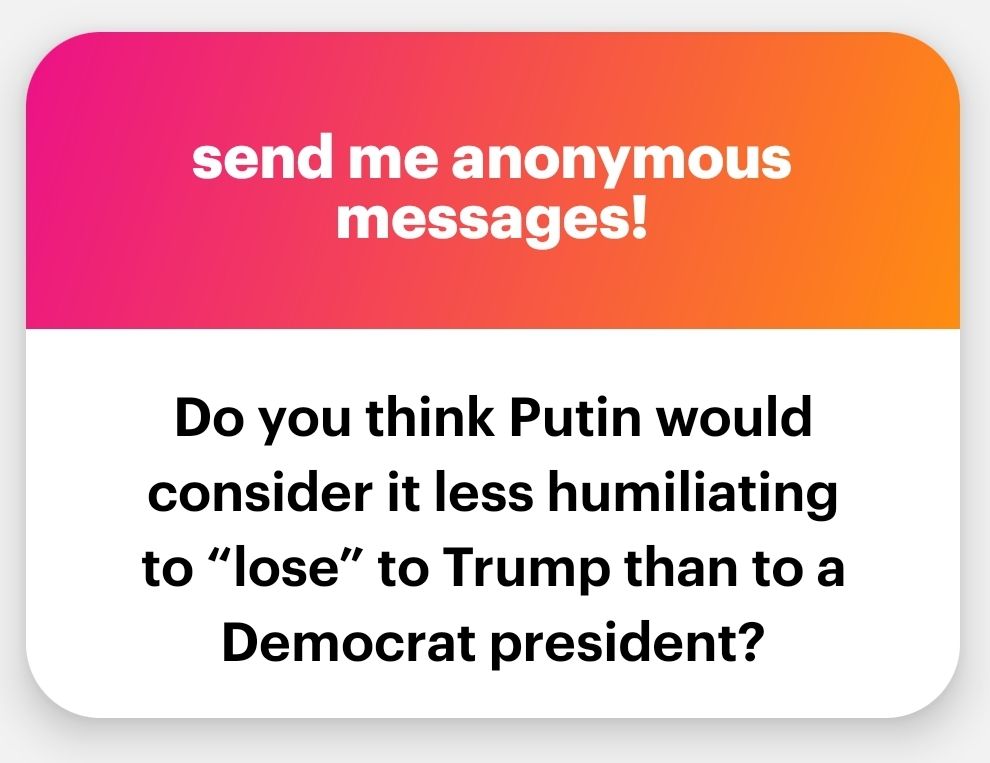 I’m not sure what this question is supposed to mean since Russia, Iran and North Korea are fighting against Ukraine and not against American presidents, be they who they are. I do know that the Russia appeasement strategy that has dominated the foreign policy of the US since 1991 has not worked. We can all agree it has been a complete failure, I’m sure. I’m eager to see the US try something different because only an absolute idiot keeps hitting his head against the wall for 30 years, expecting a different result.