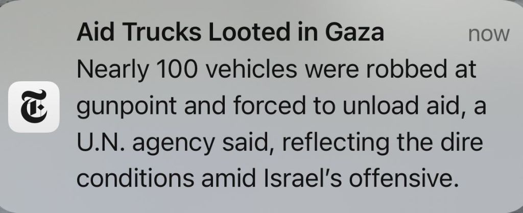 Well, just going by the headline, it doesn’t look as though they’re trying to implicate Israel directly as the brigands, but rather “Israel caused a disruption, and brigands are taking advantage.” If so, then… are they saying Israel should take charge and police this situation?
