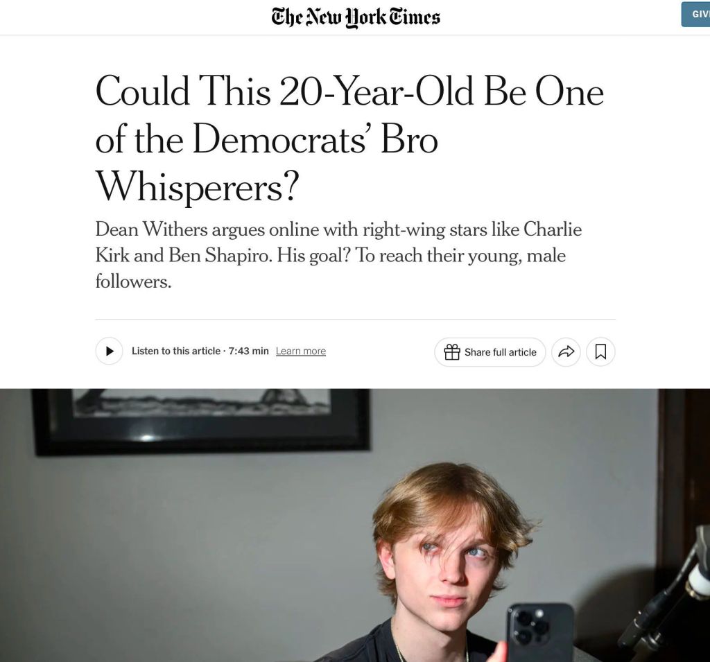It’s so funny that young men are now a mysterious Other to libs, an unchartered dark continent, just waiting to be explored and explained. Good job, dems, at shitting the bed so fucking hard lol.
