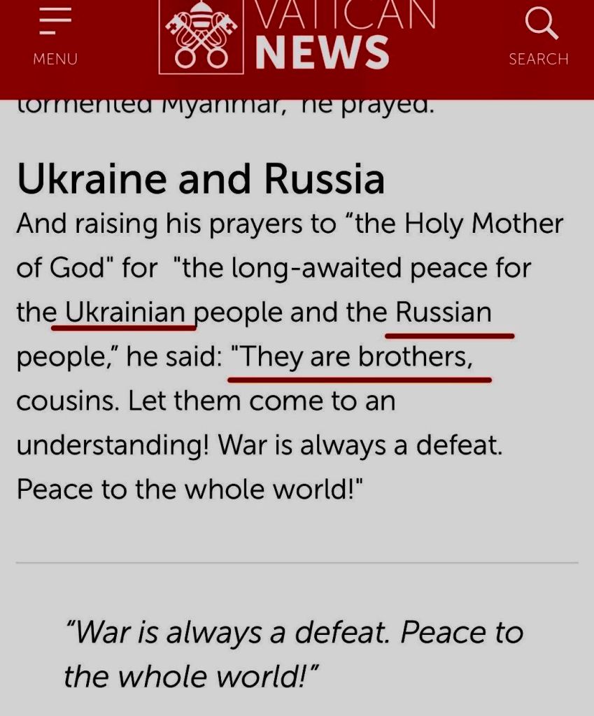 Given that the narrative “we are brothers” is the (not a but the) cause of the war, what the Pope said is massively stupid.