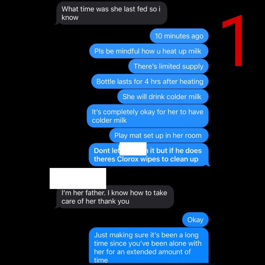 Then she posts this exchange that happened when the Dad did stay with the baby: