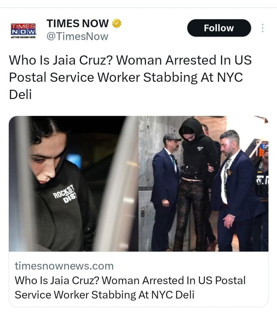 Jaia Cruz is identified as “a transgender woman with a history of violence.” Before fatally stabbing a postal service worker and been charged with second-degree murder, Cruz was well-known to police: