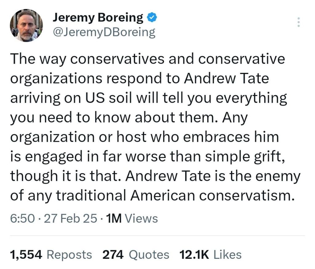 The Tates developed a quirky, standout brand. That’s what matters. Who cares that they are ugly, sleazy pedos? Morality is dead anyway. Boreing is simply too old to move with the times and enjoy the originality and the rule breaking.
