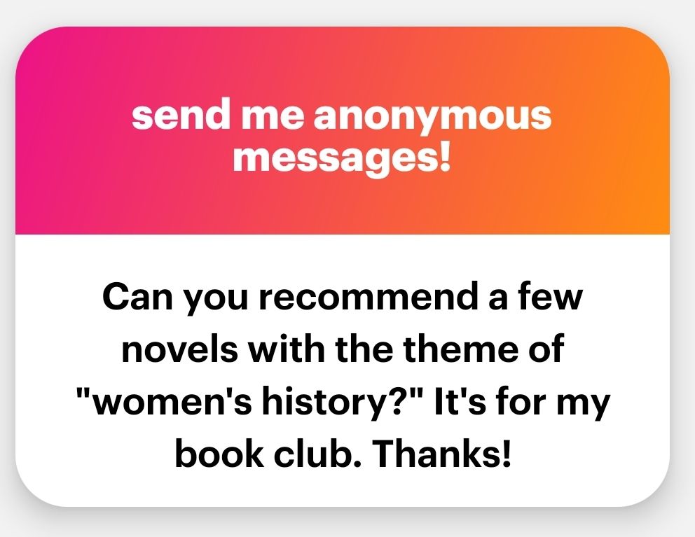 I’m not entirely sure what women’s history means. Is it historical novel with female characters? I don’t read much of that but if you are liberally disposed, you could go with The Time In Between by Maria Dueñas. I think it’s available on Kindle Unlimited.