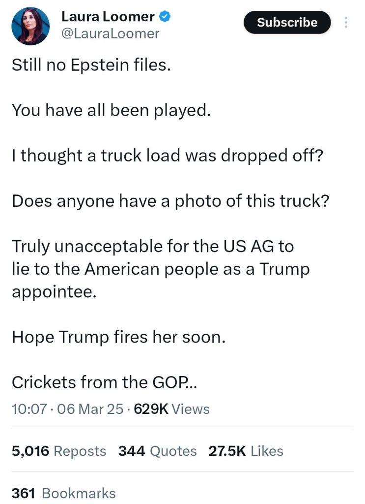 I assume that the detailed plans for the Epstein Files reveal emerged from among those people, liaising with career intelligence professionals able to work with the new regime, and that Bondi and/or Trump just signed off on those plans…