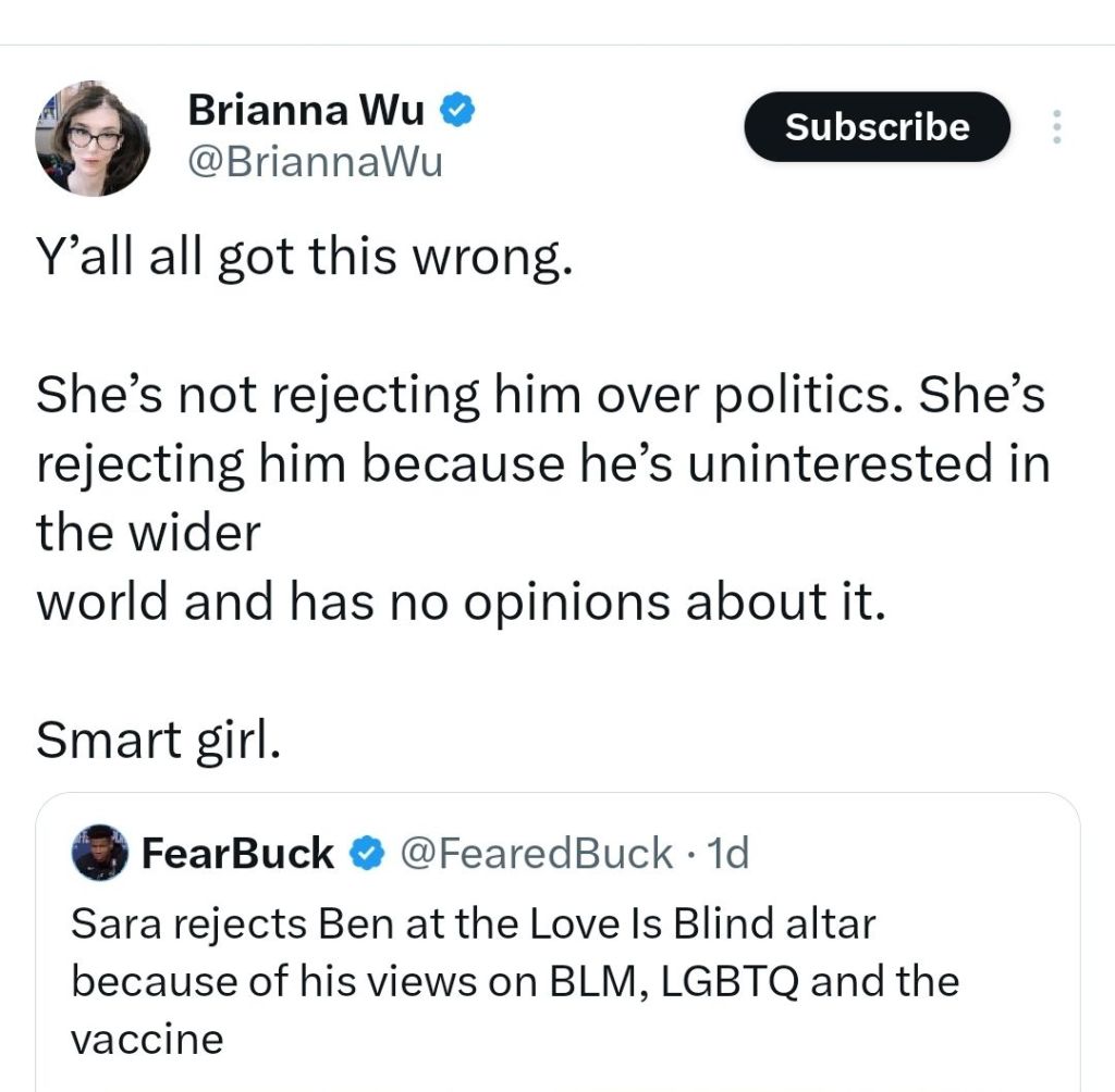 Exactly. Its the woman’s job to determine if she wants to build a family with any particular man. Just that simple.