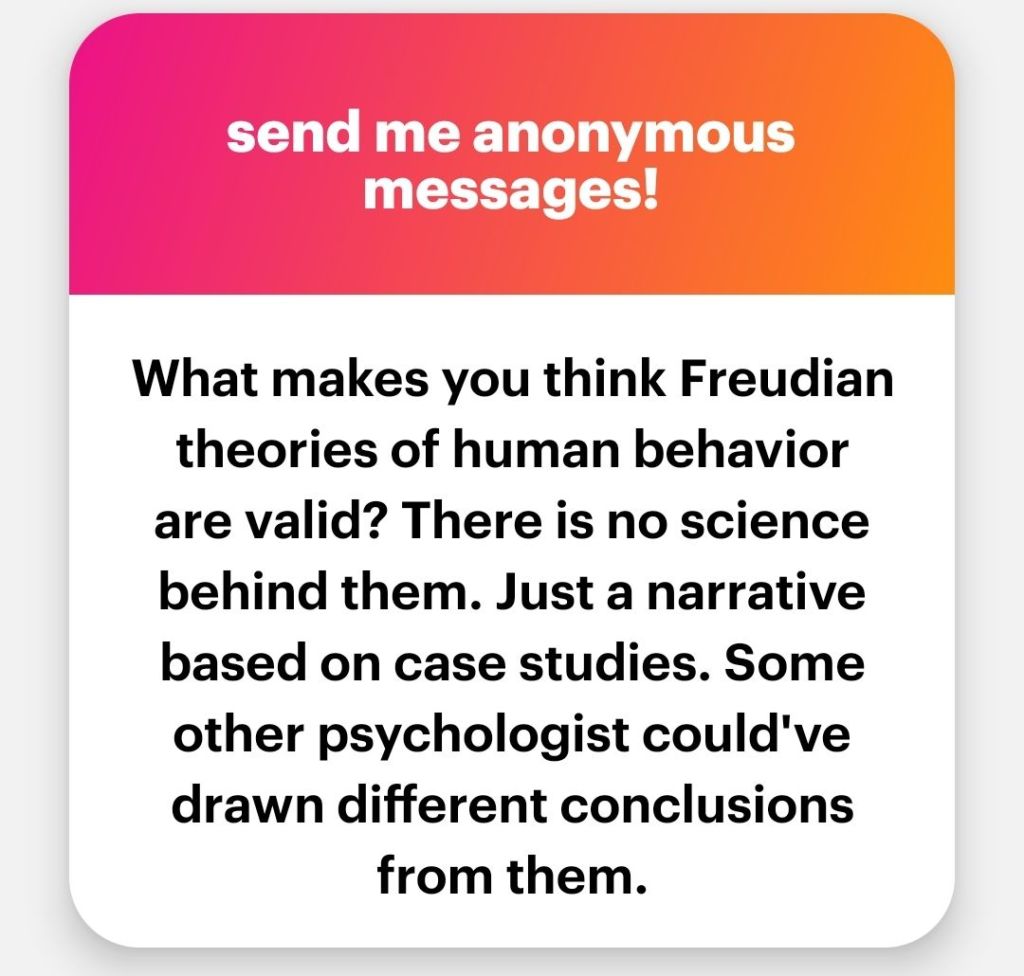 Going back to Freud, the same principle is at work. Of course, anybody could have drawn different conclusions from the same case studies. But Freud’s conclusions have been very useful to many people for over a century. I know somebody who kicked a heroin addiction. That’s big. I also know people who kicked less terrible but still very powerful addictions with the help of Freudian analysts. N had a gaming addiction where he almost burned down the house and did himself permanent physical damage. He’s now completely cured from the addiction. I’ve seen incredible results. I’ve had incredible results. That other fellow with his different readings of the same studies didn’t help me in any way. Freud did.