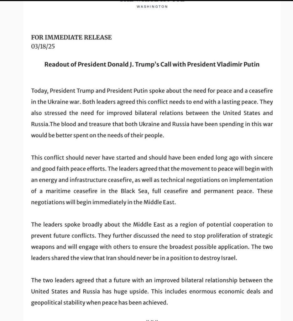 1. What bugs me is that we are once again in a reality where objective facts can’t be said aloud. Zelensky agreed to Trump’s proposal regarding the 30-day ceasefire. Putin rejected it. This is an objective fact. But nobody on our side will have the strength to say it. So how are we different from the libs? That we love Israel more? Yippee.