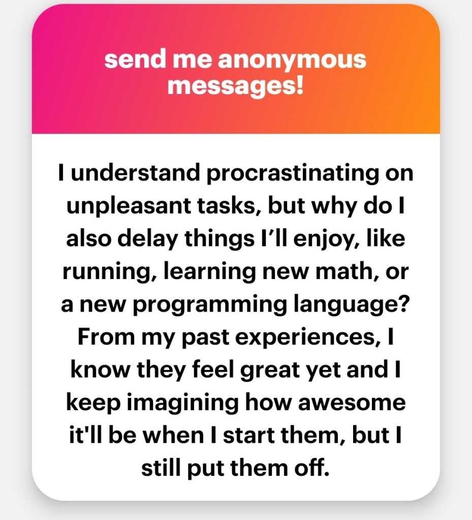 A very, very familiar issue that I experience regularly. The why lies in the depths of your and my psyche, so let’s leave that aside for a while and concentrate on how to overcome this.