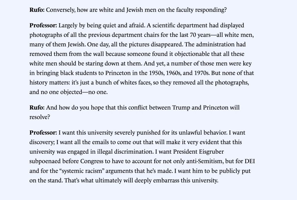 The anonymous Princeton professor wants the university to be punished and “President Eisgruber to be publicly put on the stand” as well as an array of various other inquisition-style actions, all the while remaining anonymous.
