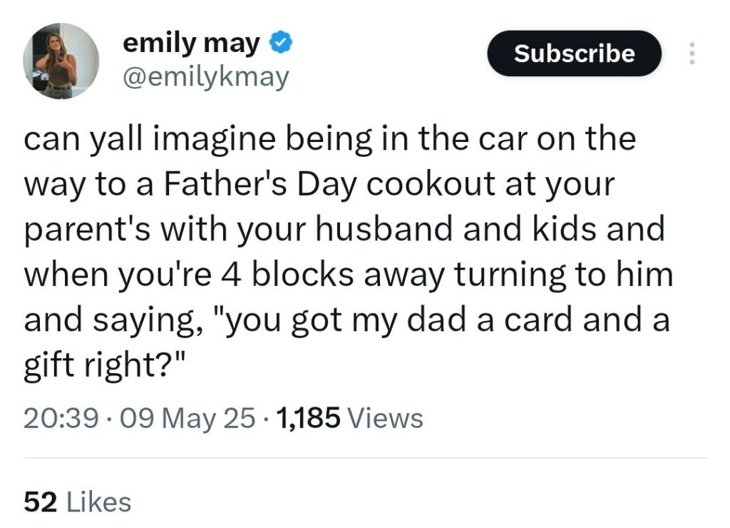 Seriously, you can’t figure out a system of who buys presents? With your partner in life, the person who’s closest to you, you just absolutely can’t make it work? That’s ineptitude of extreme proportions.